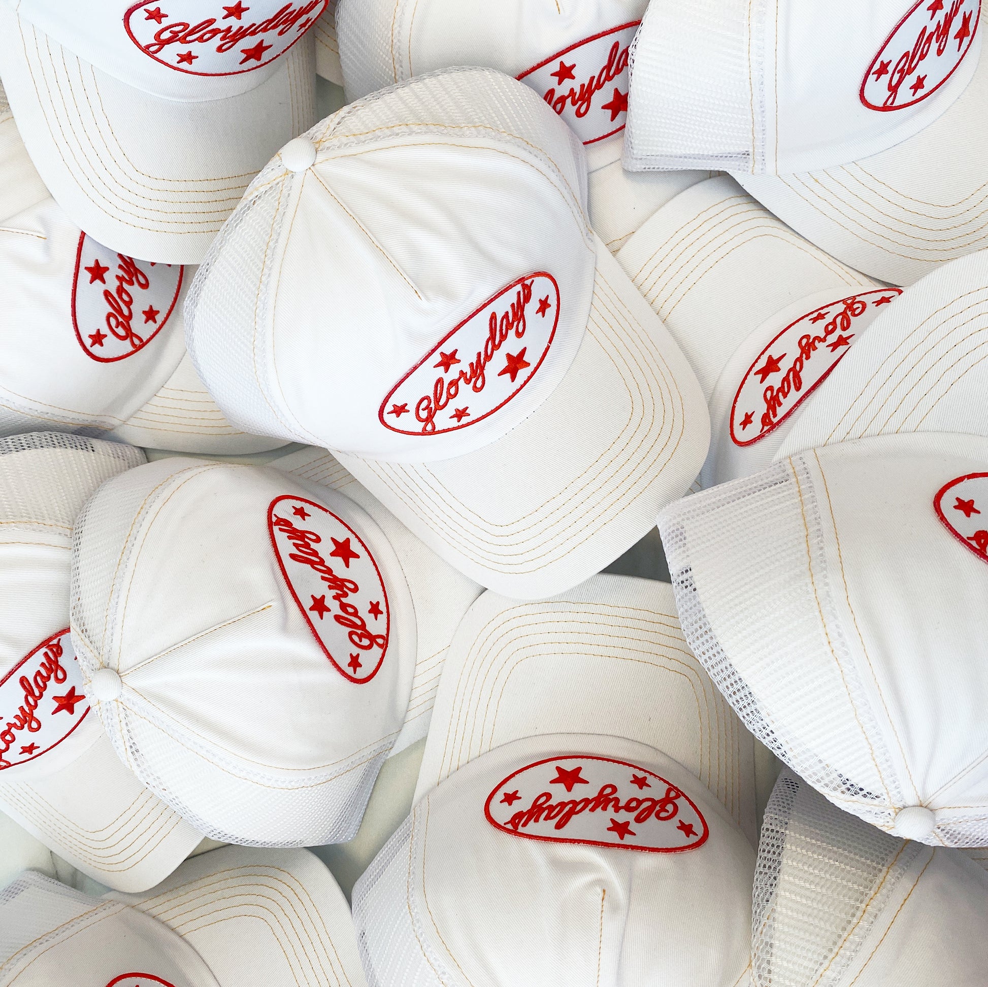 Low profile five panel cap. Glorydays logo with embroidery patched at the front.